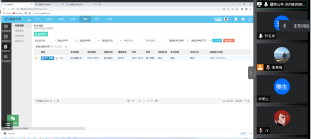 期末临近,为了切实做好线上考核工作,最大程度地降低疫情对本科教学质量的影响,近日太阳成集团tyc234cc官网安排工科数学分析信息大类课程组对在线考试的组织方式和相关平台进行调研。课程团队结合以前在线考试的经验和课程特点及需求,分别于1130号和121号对智慧树和融智云在线考试平台进行了调研。