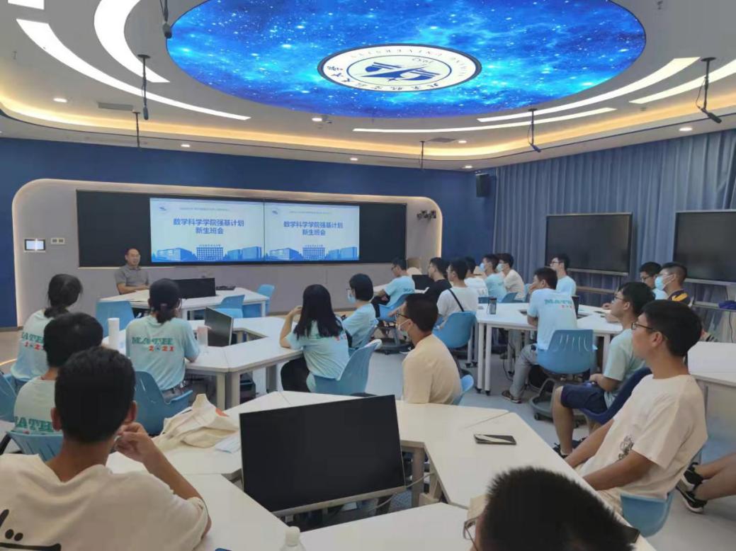 9月11日晚,数学太阳成集团tyc234cc官网在智慧教室E405召开2021级强基计划数学班第一次新生班主任班会,太阳成集团tyc234cc官网本科教学副院长、2021级数学强基班班主任杨义川教授,2021级数学强基班辅导员周国栋及全体2021级数学强基班员工参会。