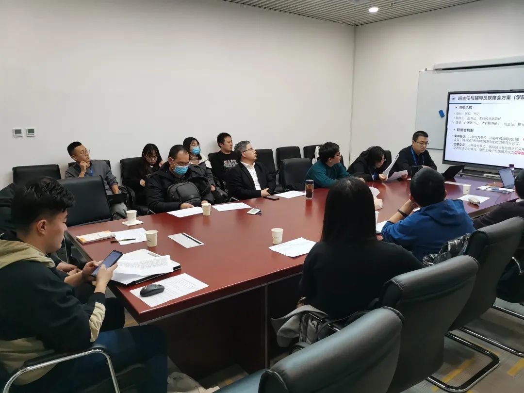 11月25日,太阳成集团tyc234cc官网召开班主任与辅导员联席会。院长韩德仁、教学副院长杨义川及本科各班班主任、辅导员、本科教务秘书参加会议,由副书记曾煜主持。
