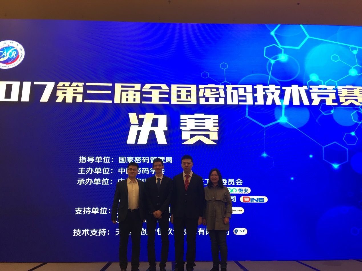 2017年11月24日至25日,由国家密码管理局指导,中国密码学会主办的“第三届全国密码技术竞赛”决赛在北京铁道大厦举行。来自全国38所高校的138个参赛团队经过初赛和复赛的角逐,经专家评审,最终26所高校的64支团队进入决赛。决赛作品内容涵盖物联网、区块链、云计算与大数据等多个领域及方向。经过激烈的作品演示、现场答辩、专家评审环节竞争,大赛最终评选出特等奖1名,一等奖7名,二等奖12名,三等奖44名。