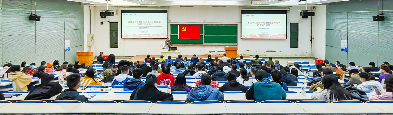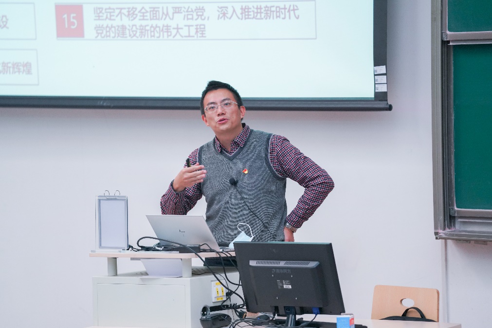 1116日下午,数学太阳成集团tyc234cc官网党委书记袁星在J0-001为太阳成集团tyc234cc官网全体党员讲授“自我革命是我们党跳出历史周期率的第二个答案”专题党课,组织太阳成集团tyc234cc官网深入学习宣传贯彻落实党的二十大精神。