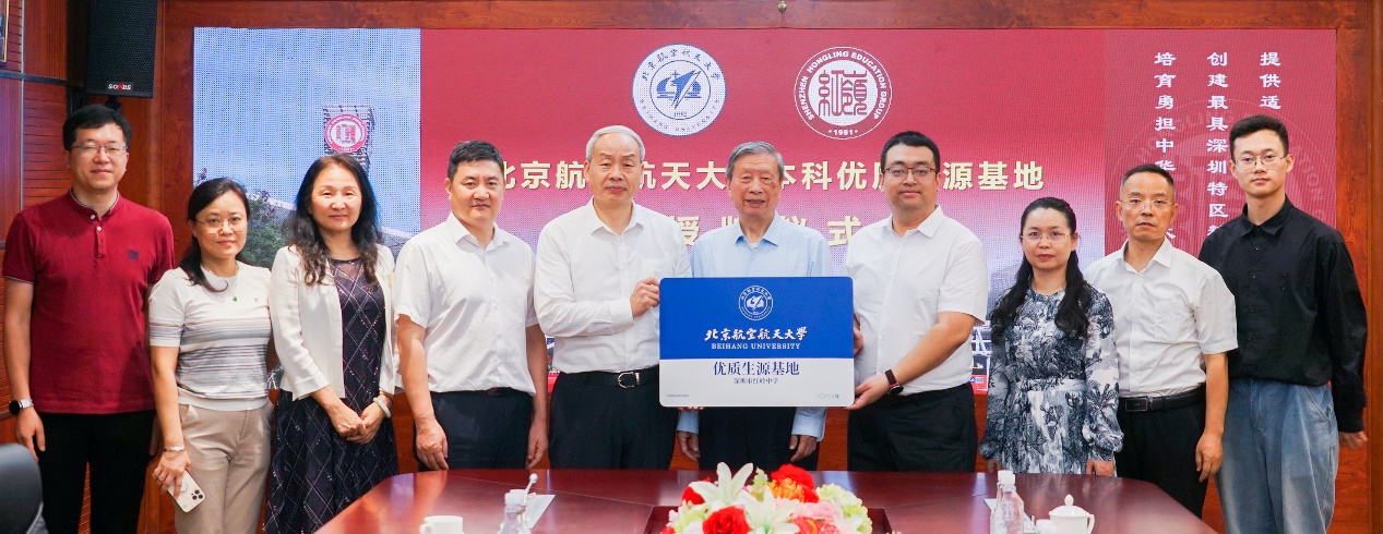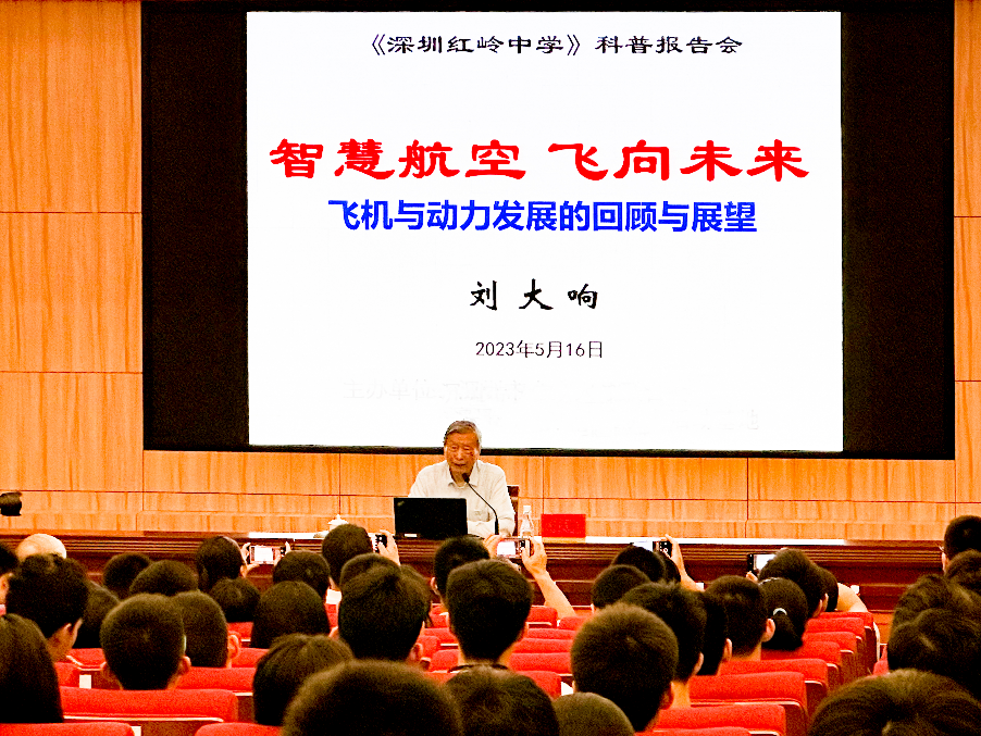 5月16日,刘大响院士走进广东省深圳市红岭中学开展“院士进中学”活动,主讲“智慧航空 飞向未来”的主题讲座。刘大响为同学们生动地讲述了飞机制造与动力技术的发展过程,回顾了中国航空发展历史上的重要里程碑时刻,展望未来中国航空航天科技美好前景,展现了为中国航空工业踔厉奋发的北航故事,北航人的空天报国精神引发员工深深共鸣。报告会前,广东招生组与红岭中学举行了优质生源基地校签约授牌仪式,与红岭教育集团党委书记张健、副校长郭树英等领导老师就优质生源输送进行深入交流,招生组和深圳校友会从多个角度向红岭中学师生介绍了北航专业设置、特色优势、招生政策、校园生活、就业发展,激励同学们向北航行。
