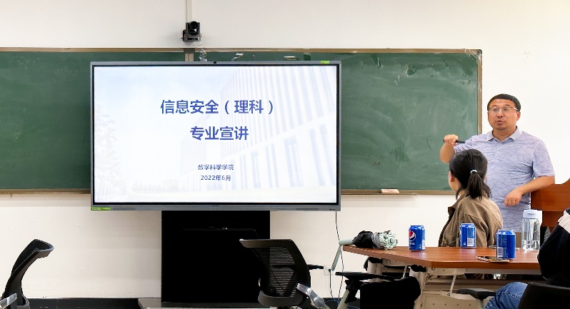 应用数学系员工韦卫从发展历史、培养目标、课程设置三方面介绍了信息安全(理科)专业。应用数学系员工王海辉、杨卓琴、严夺魁、王进良分别介绍了各自的研究方向,并与同学们进行了深入交流。