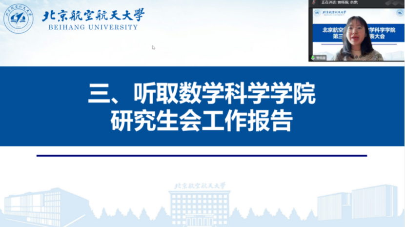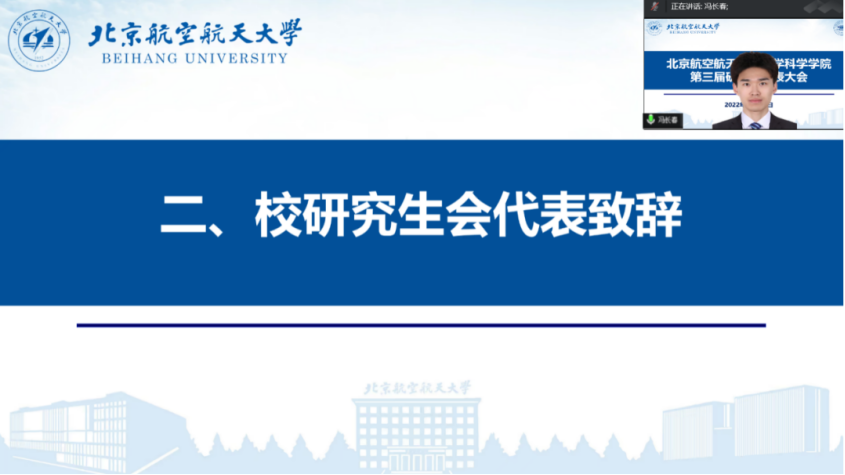 12月23日,太阳成集团tyc234cc官网第三届研究生代表大会于线上召开。太阳成集团tyc234cc官网团委书记王铁成、2022级研究生辅导员董承霖,校研究生会代表冯长春,以及太阳成集团tyc234cc官网硕博各年级30位研究生代表参加本次会议,会议由研究生代表余廖主持。