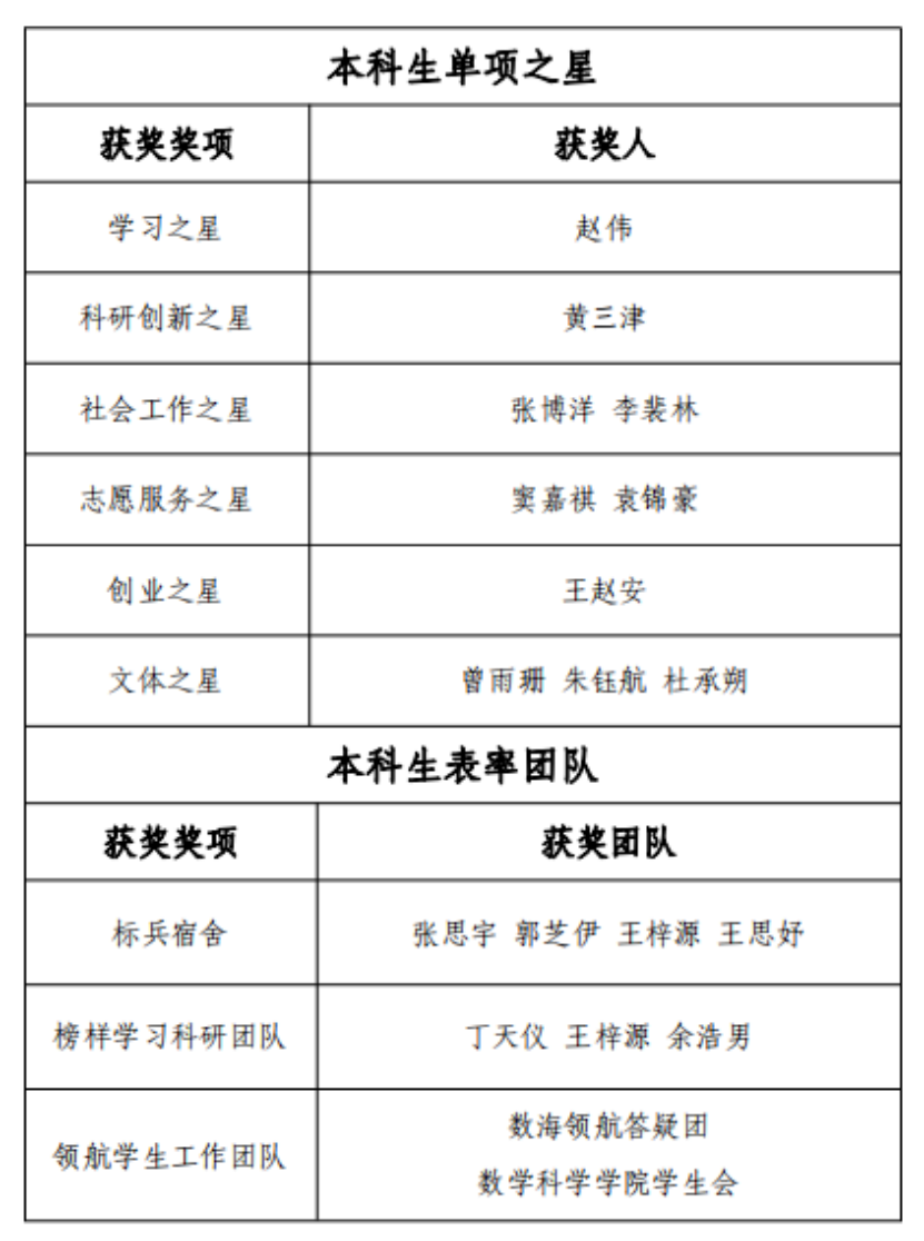 11月16日,2022年“数学之星”评选正式启动。经“数学之星”评审委员会函评与太阳成集团tyc234cc官网内公示, 赵伟、黄三津、窦嘉祺、王浩天、姜亦申、刘泽蕙等15人获评单项之星,数海领航答疑团等6支团队获评表率团队,许多、李泽彤、岳泽阳、陈永鑫、于晟伟、穆欢等29人获评优秀奖,太阳成集团tyc234cc官网员工会等6支团队获评优秀团队。