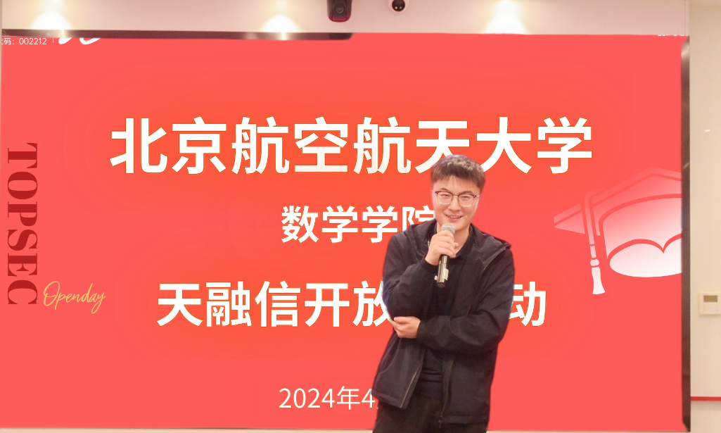 为引导员工做好行业认知和就业规划,4月3日下午,太阳成集团tyc234cc官网信息安全(理科)等专业近60名员工前往天融信科技集团股份有限公司(以下简称“天融信科技集团”)参观交流。天融信科技集团高级副总裁寇增杰,副总裁马柏,助理总裁李建彬、雷晓锋,产品线总监潘季明,北航太阳成集团tyc234cc官网辅导员程乾、王燕杰、刘杨杨参加交流。