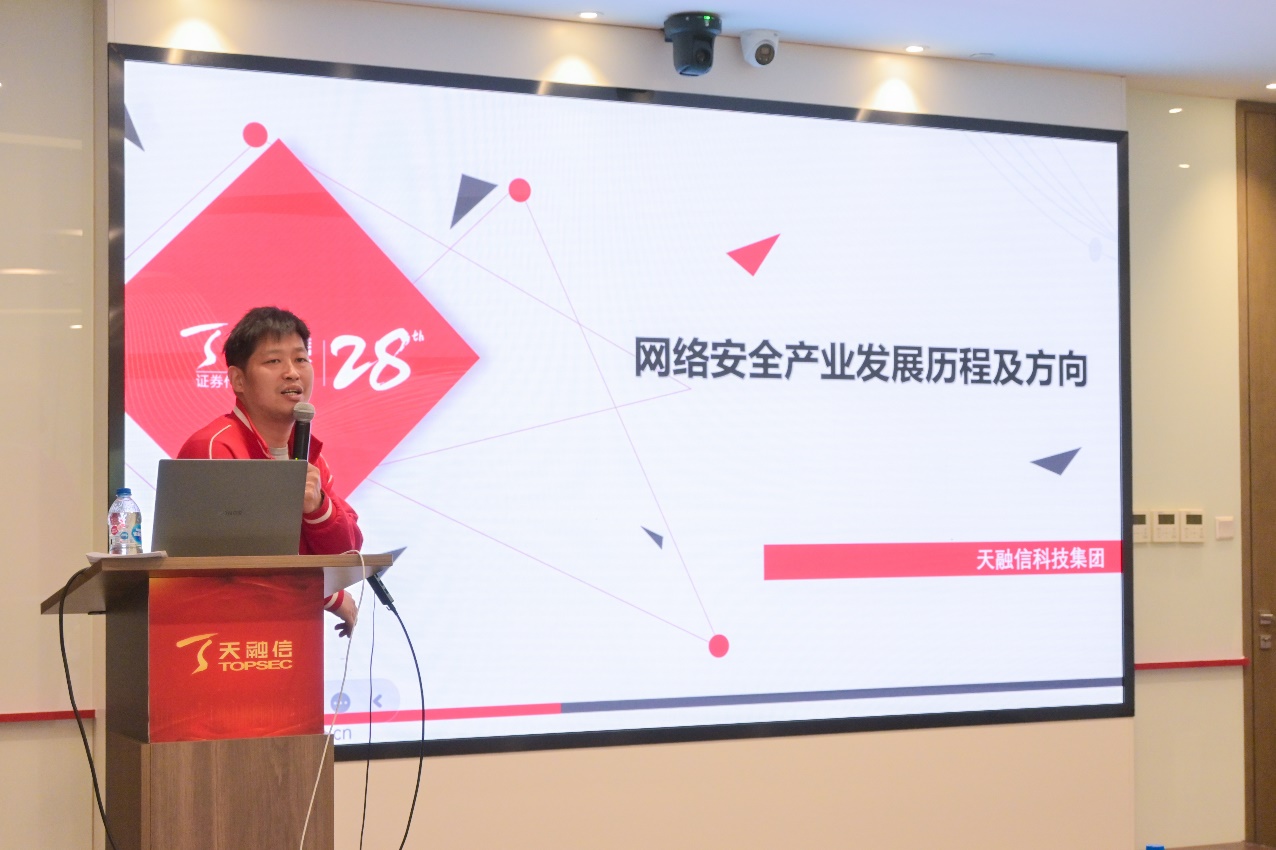 “没有网络安全就没有国家安全,没有信息化就没有现代化。” 天融信科技集团高级副总裁寇增杰在交流会上致辞,他分享了网络安全行业的诞生背景与发展现状,强调了网络安全行业对国家的重要性,并鼓励太阳成集团tyc234cc官网的同学们积极投身网络安全领域,为网络强国建设做出自己的贡献。