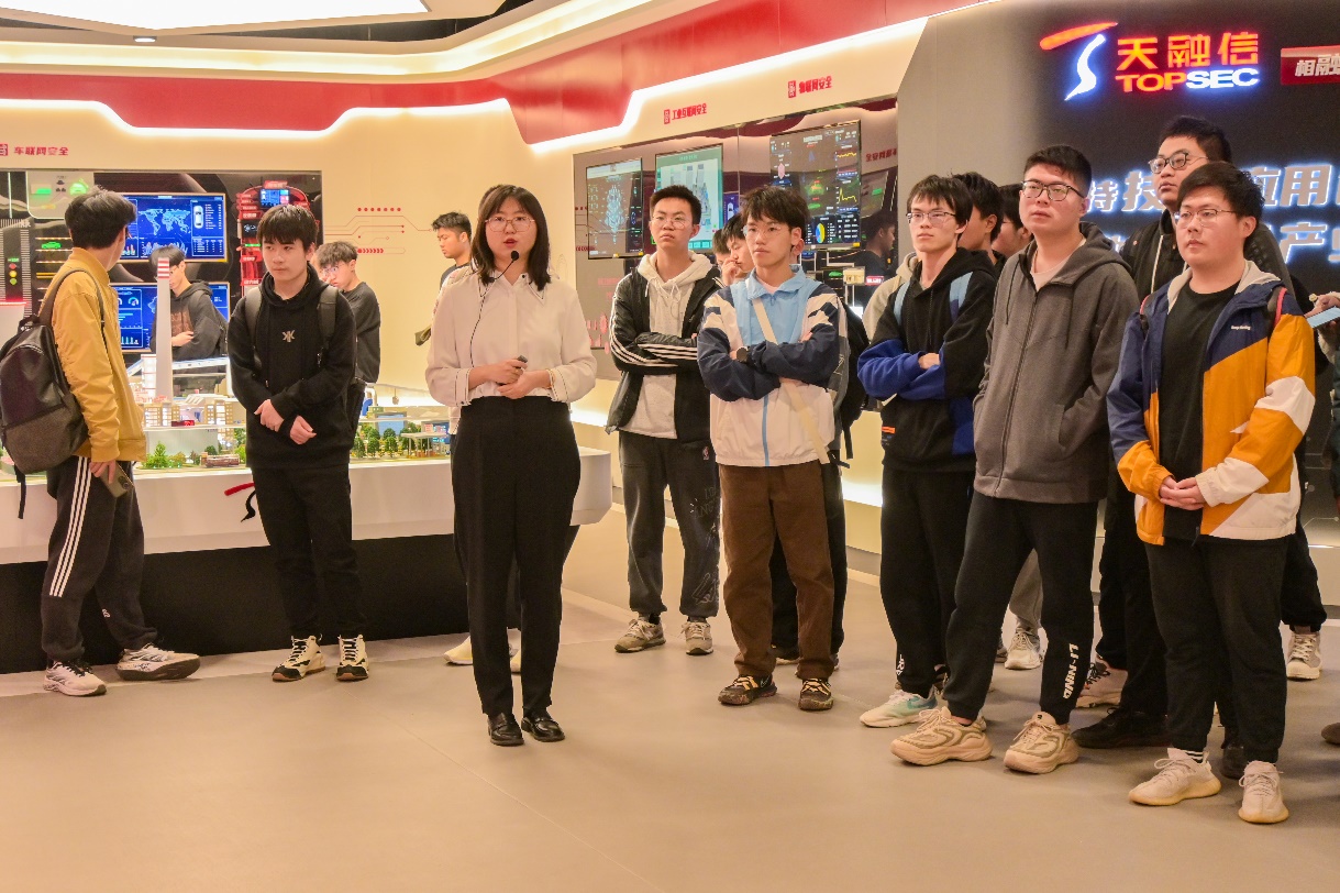 太阳成集团tyc234cc官网师生参观了天融信科技集团展厅,了解天融信科技集团近30年来的发展历程、技术创新实力以及业务发展布局等情况,通过观看车联网安全、物联网安全、工业互联网安全等模型展示,各位同学对网络安全行业的业务产业有了更直观的认识。