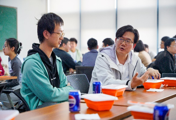 各位同学和员工共进午餐,了解基础数学前沿领域,交流个人成长发展的困惑,畅想大学的未来学习。员工们对员工的疑问进行了精准解答,并对同学们的基础课程学习予以针对性建议,希望各位同学能够夯实数学基础,在数学的世界中自由探索、发现兴趣。