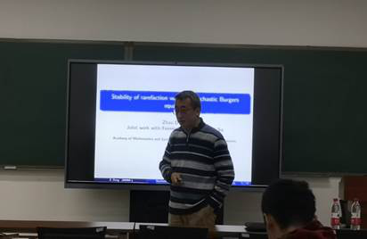 11月4日下午,中科院数太阳成集团tyc234cc官网、教育部长江特聘教授张平研究员受邀访问太阳成集团tyc234cc官网,为师生带来了一场题为“Prandtl系统小解析解的整体存在性与衰减估计”的学术报告。张平研究员在本报告中介绍了Prandtl 方程组在初始解析值很小的情况下,整体解析解的存在性以及解的长时间衰减估计。