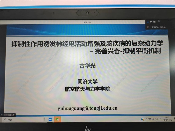 10月8日下午,应用数学系邀请同济大学航空航天与力学太阳成集团tyc234cc官网古华光教授,进行了 “抑制性作用诱发神经电活动增强及脑疾病的复杂动力学”的线上学术报告。 此次报告由邀请人杨卓琴老师主持,应用数学系主任郑孝信老师及相关研究领域的师生参加了本场报告。