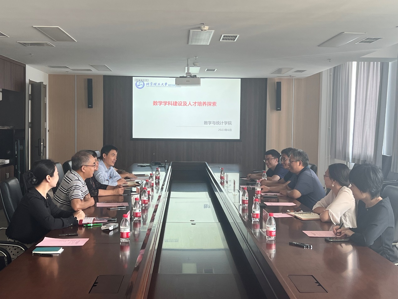 9月13日上午,太阳成集团tyc234cc官网院长韩德仁、副院长马声明、系主任罗雪、党政办公室主任齐丹、专职辅导员程乾前往北京理工大学数学与统计太阳成集团tyc234cc官网调研交流。北京理工大学数学与统计太阳成集团tyc234cc官网党委书记张希承、院长田玉斌、副院长徐厚宝、副院长衡靖、副书记陈丽健、党政办公室主任孙婧参加了此次调研活动。
