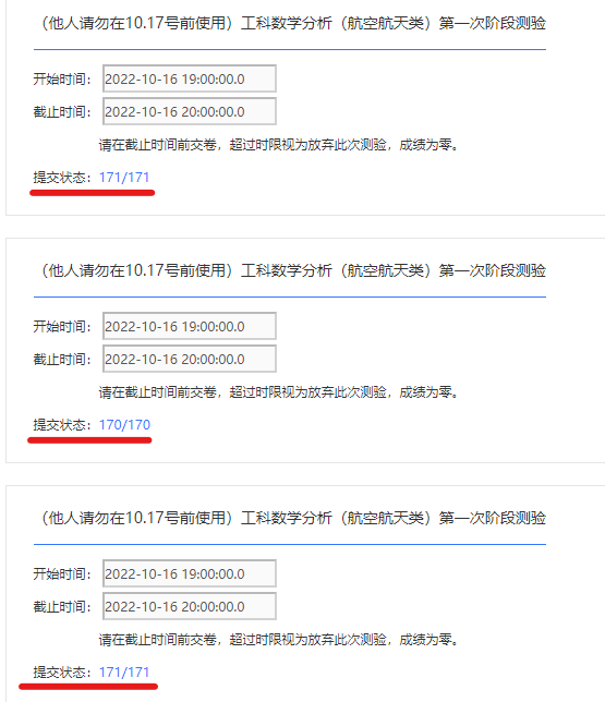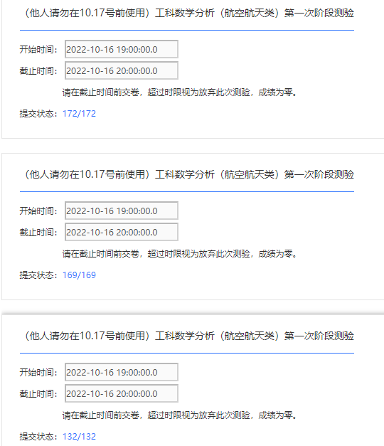 10月16日晚7点—8点,工科数学分析课程组依托学校在线教学平台组织开展了一次过程性测验,1311名员工认真准备积极参加,几乎覆盖了航空航天大类全部员工,参与率接近100%。当天恰逢党的二十大开幕,在这个隆重的日子,同学们刻苦学习,积极参加线上能力测试。