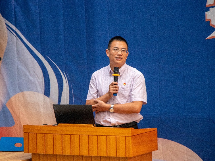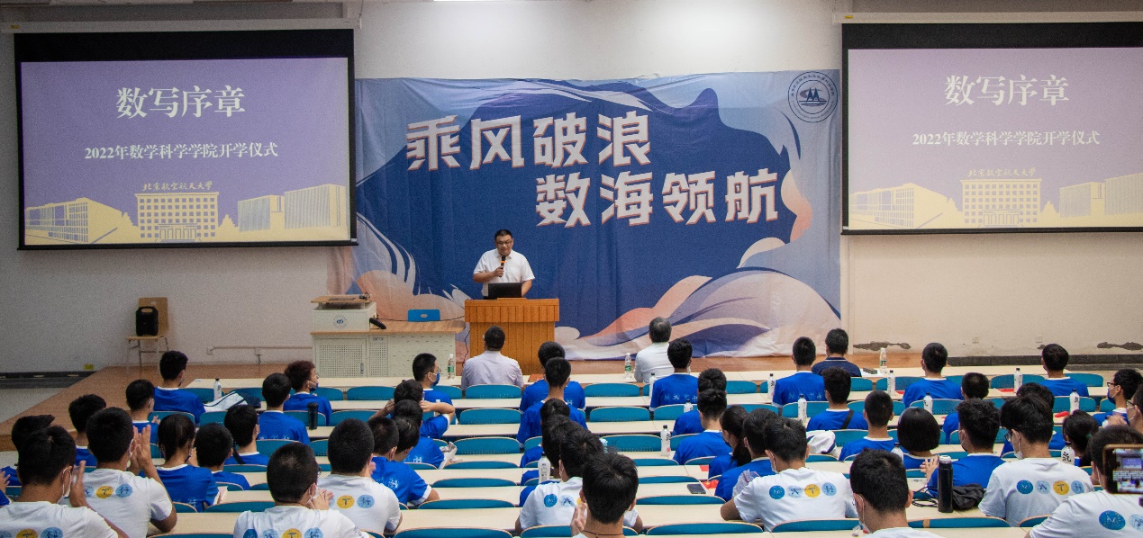太阳成集团tyc234cc官网党委书记袁星在开学仪式上致辞。袁星对各位新数学人的到来表示热烈的欢迎,并结合王云鹏校长在开学典礼上的讲话对新数学人提出了三点希望。一是要敢于亮剑,立大志、立长志,增强作为北航数学人的自信与底气;二是要善于沟通,加强朋辈交流、师生交流、院生交流,以主动的姿态和衷携手;三是要勇于担当,以“一枝一叶总关情”的公心服务奉献,以“咬定青山不放松”的定力持续砥砺。