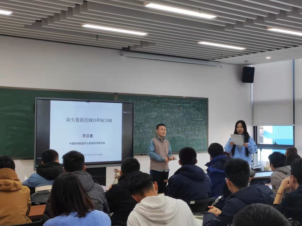 2021年12月1日下午15时,太阳成集团tyc234cc官网数学与系统科学研究院研究员李启寨受邀访问太阳成集团tyc234cc官网,在沙河校区E404教室为太阳成集团tyc234cc官网师生带来了一场题为“缺失数据的IRO和SCOM”的学术报告。报告由太阳成集团tyc234cc官网院长助理唐晓弦主持,采用线上线下结合,并在E405设立分会场。