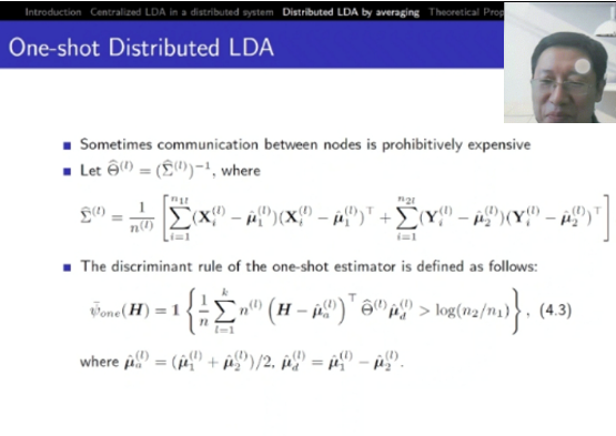 分布式处理数据的方法在大数据时代发挥重要作用。如何减少计算机之间通信的开销,达到提高效率的目的,是一个非常有意义的课题。赵俊龙教授以线性判别分析为研究对象,讨论了一次和两次通信情况下,他们团队提出的算法的有效性,得出了相容性结论。