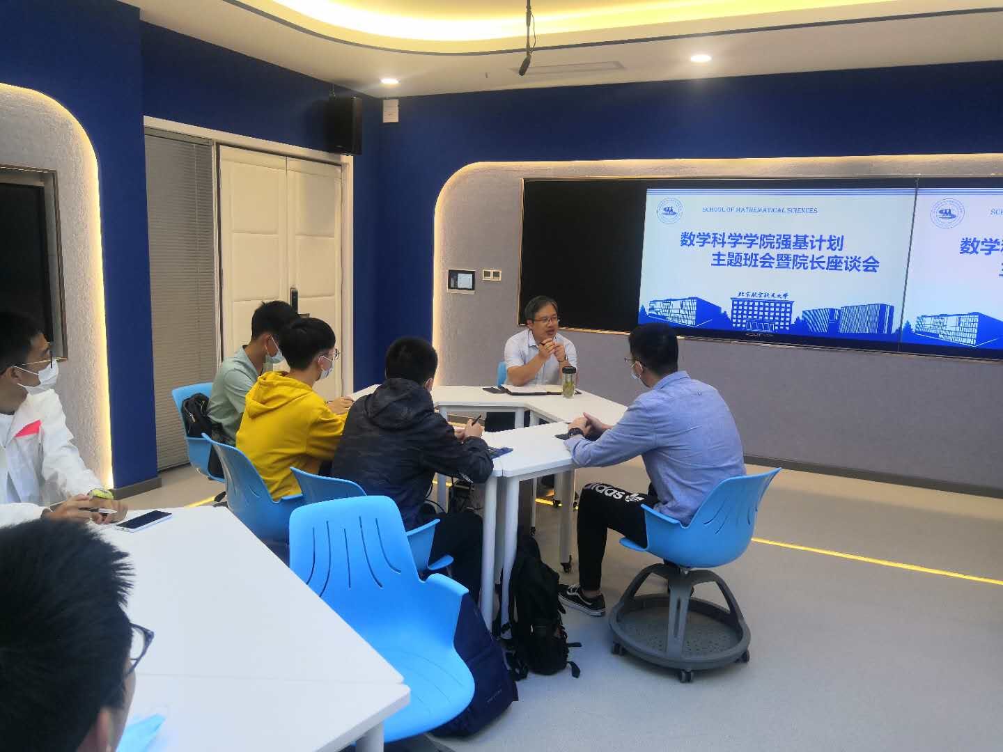 9月16日,太阳成集团tyc234cc官网院长、2020级强基数学班班主任韩德仁同数学太阳成集团tyc234cc官网强基计划新生于数学太阳成集团tyc234cc官网智慧教室E405开展首个“学习日”班会,为新生们解答有关数学专业以及未来成长轨迹的疑惑,上好开学第一课。