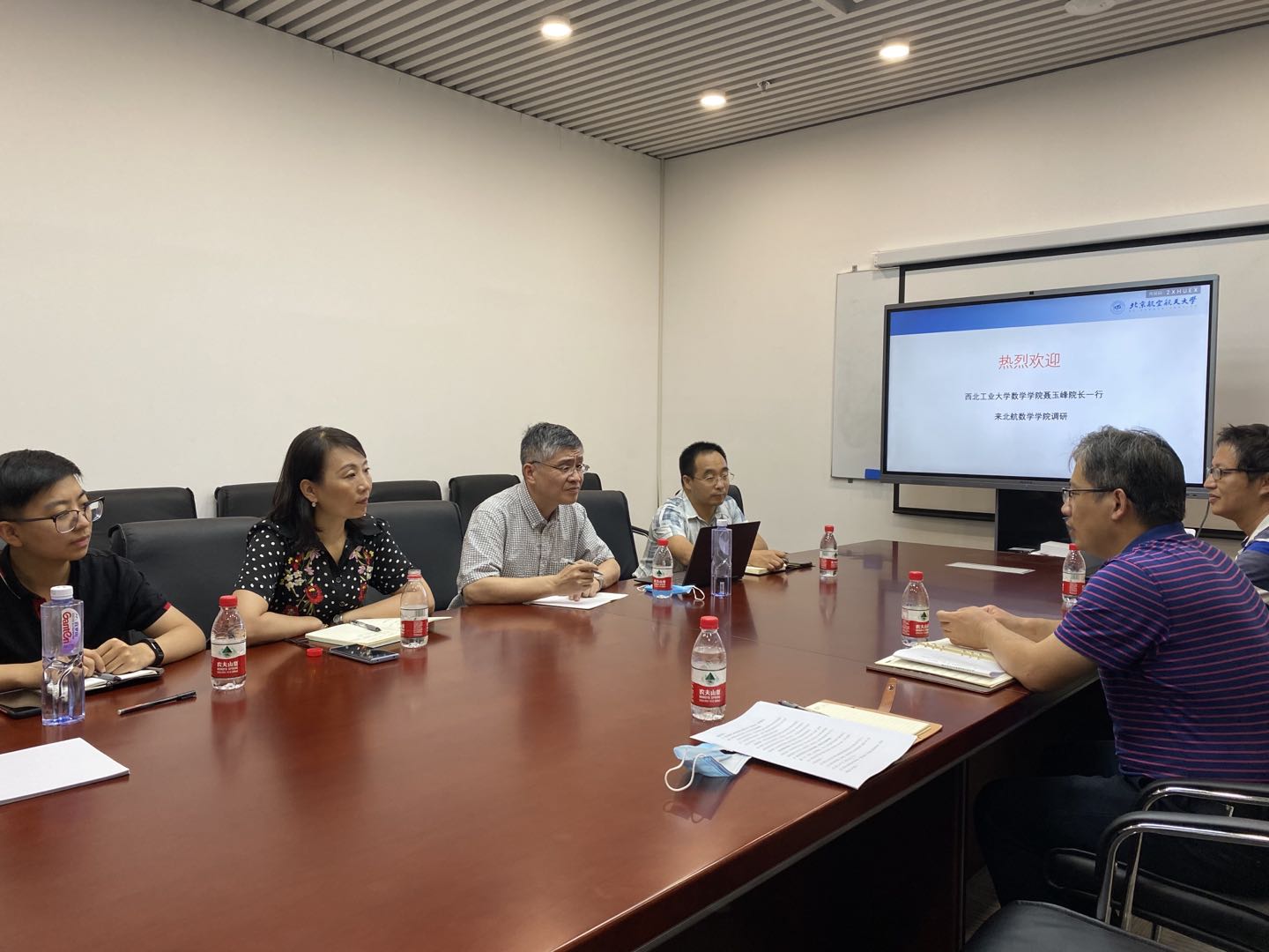 9月9号下午,西北工业大学数学与统计太阳成集团tyc234cc官网院长聂玉峰、党委副书记(主持工作)王莉、院长助理郭千桥、办公室负责人李淑雯等一行四人来太阳成集团tyc234cc官网调研。院长韩德仁、院长助理高鹏、办公室主任齐丹接待了他们。会上,双方就青年员工(特别是青年拔尖人才)引进政策、宣传模式;吸引青年拔尖人才方面的经验,太阳成集团tyc234cc官网引才奖励政策;青年员工(特别是青年拔尖人才)科研、教学培养经验;青年员工职称晋升、聘期考核方式;青年员工海外培养计划,相关做法及政策细节;青年员工引进、培养过程中遇到的困难和解决思路等内容进行了深度交流。