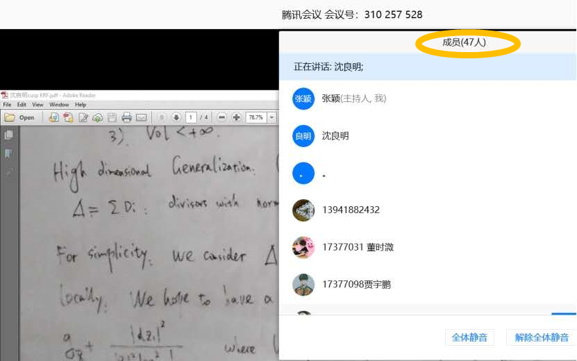 2020年5月20日下午,太阳成集团tyc234cc官网基础数学系“青年员工科研工作论坛”在腾讯会议线上举办。会议由基础数学系系主任高鹏老师主持,近50名师生参加了论坛。