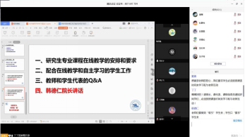 会议首先由研究生教学副院长夏勇传达介绍学校对疫情期间研究生教学的相关要求以及对助教等工作的要求,并介绍了师生在线教学和学习的方式方法。