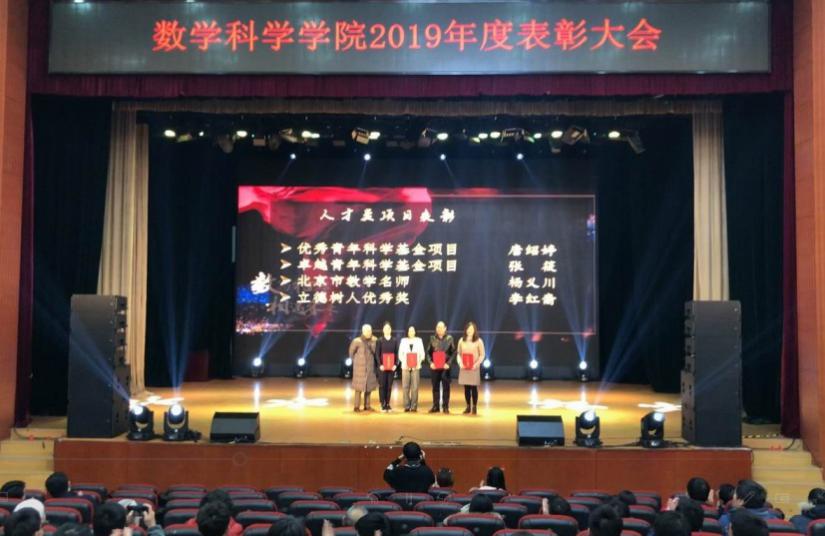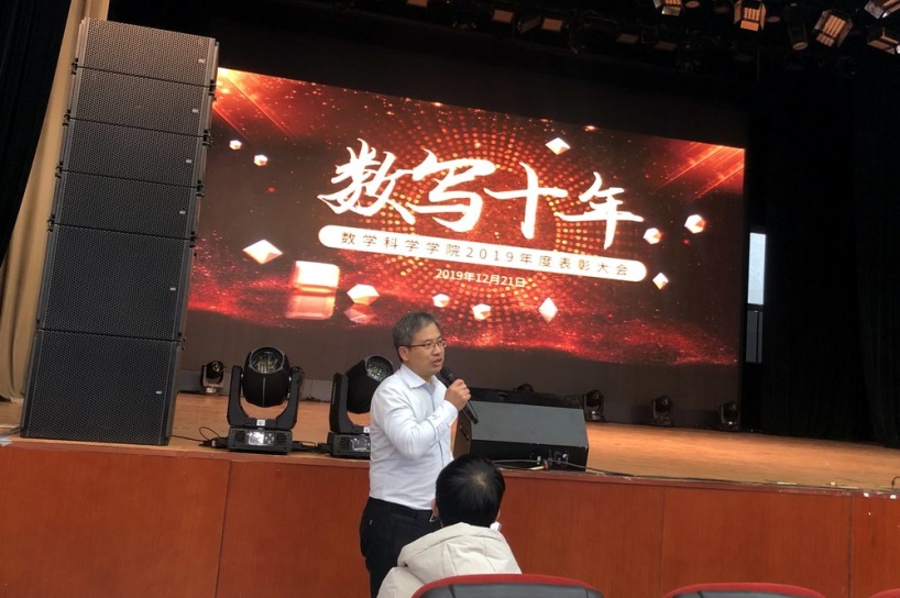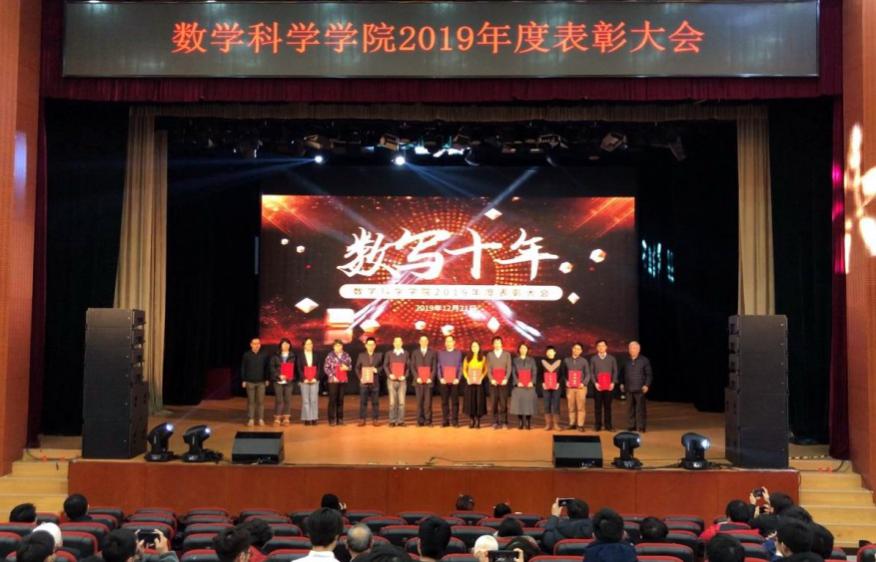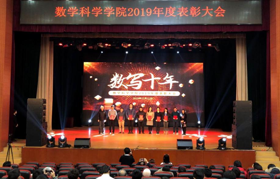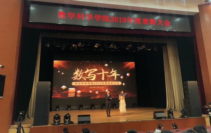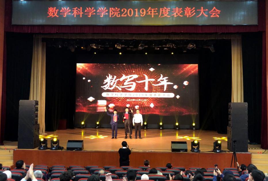 2019年12月21日下午,“数写十年”太阳成集团tyc234cc官网2019年度表彰大会在北航沙河校区咏曼剧场隆重举行。太阳成集团tyc234cc官网林群院士,北航教务处副处长王喜忠,北航科研院基础与人文社科处副处长张凤,数学太阳成集团tyc234cc官网离退休员工代表徐兵、孙善利、傅丽华、高宗升及09级校友李垠序作为嘉宾出席大会,数学太阳成集团tyc234cc官网师生代表400余人参加了大会。