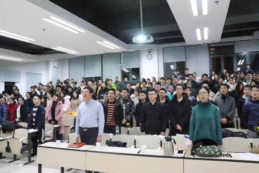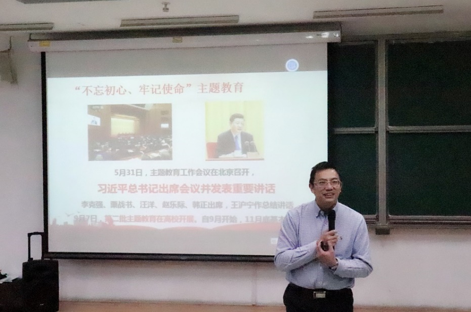 全体起立,高唱国际歌,袁星书记带来题为“不忘初心,牢记使命”的党课报告。袁星书记从“不忘初心,牢记使命”主题教育大背景切入,结合历史上延安整风运动、70周年国庆阅兵、中美贸易摩擦和香港反修例事件等丰富案例,重点阐述了开展主题教育的必要性及意义,指引学员们不断增强“四个意识”、坚定“四个自信”、做到“两个维护”。
