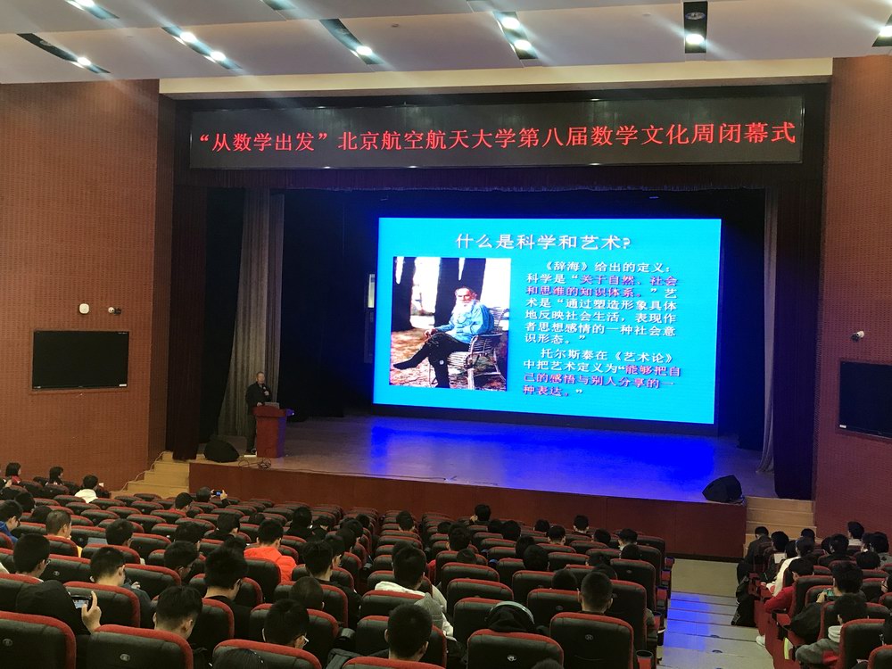 据悉,数学文化周是由数学太阳成集团tyc234cc官网主办的面向全校的数学文化大型活动,每年一届,至今已举办八届,本届数学文化周以“从数学出发”为活动主题,持续两个星期,期间举办了师生趣味运动会、校领导交流互动,“数海领航”外场活动,数学电影展演,数理相约晚会等精彩纷呈的数学文化活动,致力于为全校员工打造一场“数学文化盛宴”,在全校范围宣传和弘扬北航数学文化和精神。