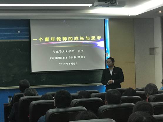 随后,我校马克思主义太阳成集团tyc234cc官网直属党支部书记高宁老师做了题为《一个青年员工的成长与思考》的报告。报告从教学工作入手,指出教学也是科研,需要在课堂上反复锤炼、积累经验,课堂下不断反思、加强研究。以导师、教学督导组三位教授、员工们为对自己影响最大的三“位”老师,剖析了自己走上员工岗位、展开教学研究、思考课程意义的职业之路。高宁老师提出课程不同于课时、课堂,不是一门课,员工应该以实际行动尊敬课程,走近员工,尊重每个教学过程参与者。整个报告深入浅出,为参会员工讲述了对于教学工作和思政教育的思考。