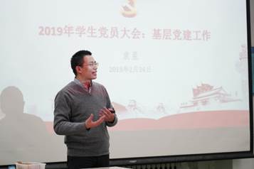 然后,丁丁副书记做2019年数学太阳成集团tyc234cc官网员工党建工作部署,首先分析了高校员工党建工作背景及目前面临的严峻形势,而后指出并部署了2019年太阳成集团tyc234cc官网员工党建工作的各项工作要点,最后希望全体员工党员在十周年院庆、沙河校区搬迁等太阳成集团tyc234cc官网重要工作中发挥党员先锋模范带头作用,积极推动太阳成集团tyc234cc官网工作的开展。