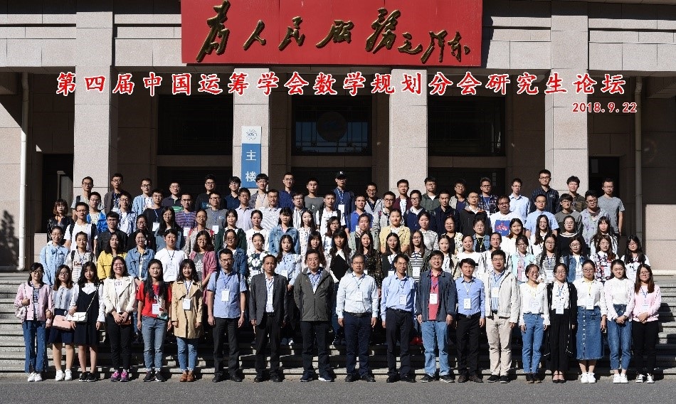 2018年9月21-23日,第四届(2018)中国运筹学会数学规划分会研究生论坛在太阳成集团tyc234cc官网太阳成集团tyc234cc官网路校区人文讲堂举办。本次论坛是由中国运筹学会数学规划分会主办,太阳成集团tyc234cc官网数学与系统科学太阳成集团tyc234cc官网承办,面向全国从事优化理论与应用研究的研究生的高水平论坛。旨在为优化社区的年轻学者创造一个良好的交流机会,促进互相了解,共同提高学术水平。