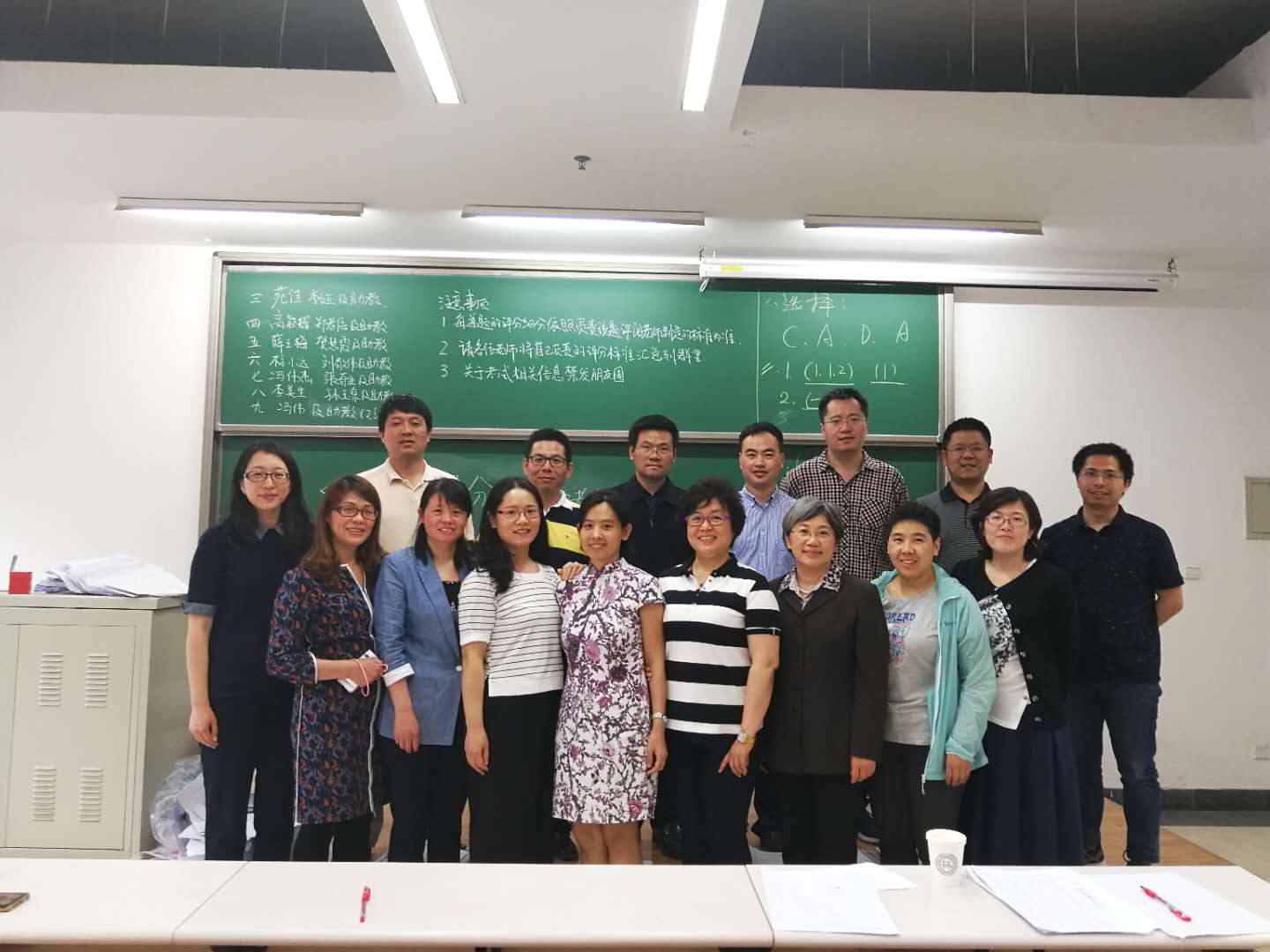 为了参与这次考试,部分年轻老师把孩子送到亲戚朋友家照看,例如文晓、苑佳老师;无人照看的,只有把小孩带到沙河,例如贺慧霞、冯伟杰老师。李美生老师身体不好,主动和孙玉泉老师一起负责安排试题的分配和评分细则的制定,起到了老员工的带头示范作用。孙玉泉和王进良老师提前1个多小时到保密室一起,等待助教领取试卷。苑佳老师和薛老师帮助整个团队订工作餐,为员工助教和老师们做好后勤保障。分析组全体老师表现出的对工作态度和热情,团队精神,令人非常感动。这无私奉献与勇于克服困难的精神表明分析课程组是一个团结的有战斗的团队。
