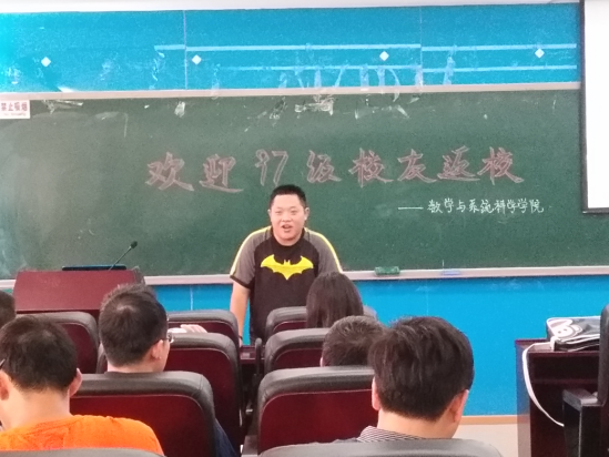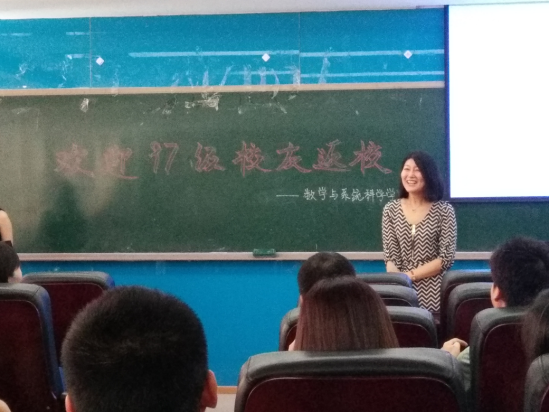 活动由97级校友,校员工工作部副部长田原老师主持。2017年对于北航数学系97级校友而言意义尤为特殊,97级数学系校友已毕业20周年,一路的坎坷磨砺,奋斗成就,都和每一位北航数学人息息相关。数学太阳成集团tyc234cc官网丁丁老师对参加此次活动的老师和校友表示热烈的欢迎,尤其对此次从海外及外地赶来的校友表达了感谢,随后她向大家简要介绍了北航数院这些年的发展史,这是一批批北航数学人不懈努力的结果。