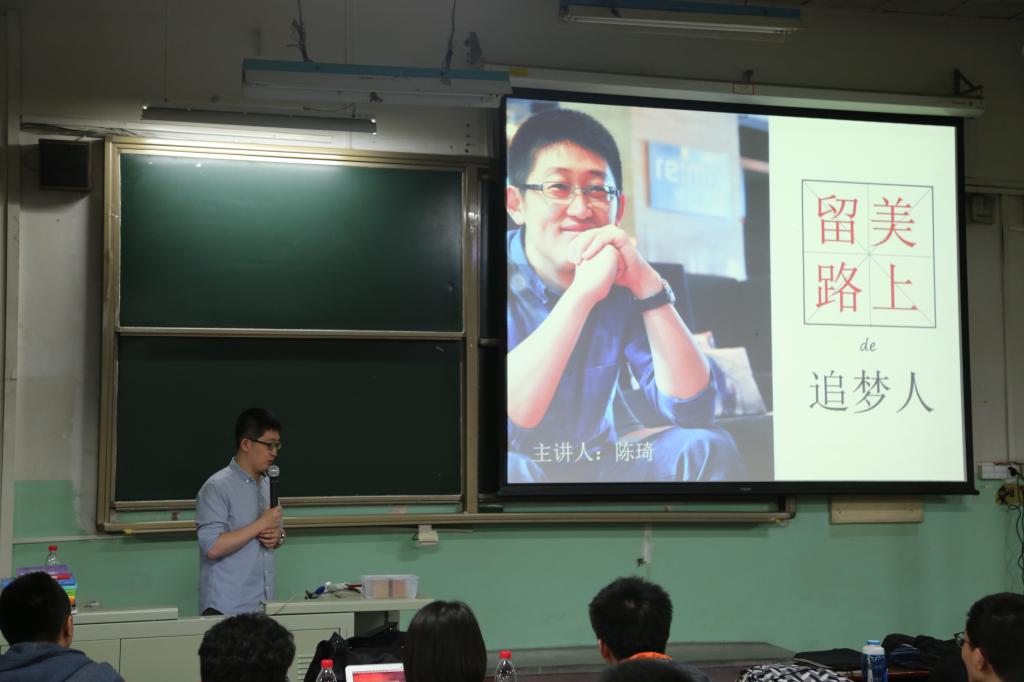 4月24日下午六点半,数学太阳成集团tyc234cc官网邀请到北航2000级校友、微臣教育的创始人陈琦老师为全校同学带来一场关于出国规划英语学习的精彩讲座。讲座还没开始,教室里已经座无虚席。据了解,来参加讲座的很多都是正在或者将要备战GRE的同学,有人声称“想要目睹琦叔的真容,跟琦叔要一个签名”。在琦叔走上讲台的瞬间,同学之间爆发出了雷鸣般的掌声。