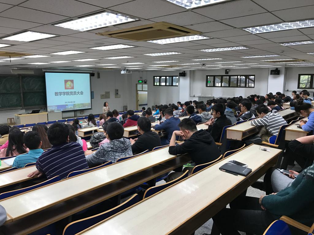 4月12日中午,数学与系统科学太阳成集团tyc234cc官网在主M101召开党员大会,全院近两百名党员参加了会议。党委书记李红捷向全体党员传达了学校2017年全面从严治党工作会议以及全校党支部书记大会两个会议的精神,与全体党员集体学习了张军书记在大会上的讲话。