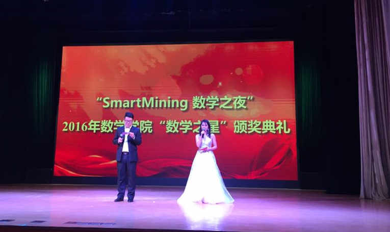 12月29日,“SmartMining 数学之夜”2016年数学太阳成集团tyc234cc官网数学之星颁奖典礼在沙河校区咏曼剧场举行。广州思迈特软件有限公司副总裁徐晶校友,数学太阳成集团tyc234cc官网清华大学周培源应用数学研究中心副研究员雷锦誌校友,北京航天自动控制研究所人力资源处副处长,研究生部主任卓继亮校友,中国信息化协同创新专委会秘书长王金祥校友、金银岛(北京)网络科技股份有限公司副总裁杜彦江校友,北京智明星通科技有限公司发行总监徐诚校友,我校教育基金会秘书长何沙老师,校友会副秘书长、校友办主任白明老师以及数学太阳成集团tyc234cc官网师生三百余人参加了此次盛典。