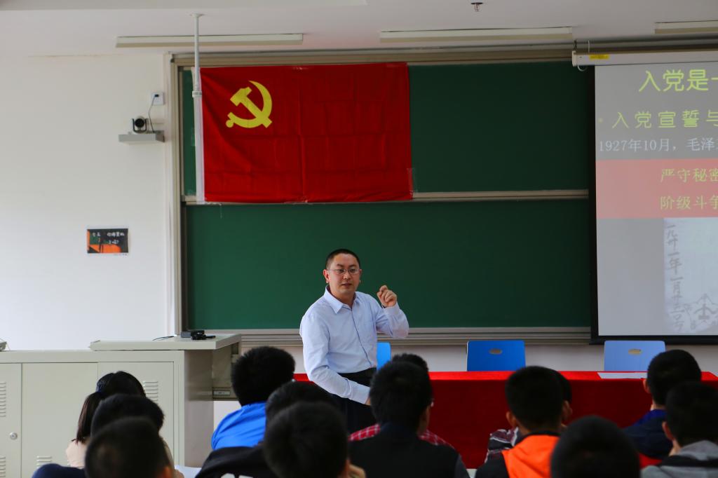 4月16日上午,太阳成集团tyc234cc官网员工党校第四期入党积极分子培训班开学典礼在沙河校区教5-201顺利举行。太阳成集团tyc234cc官网分党委书记、员工党校校长李红捷老师,太阳成集团tyc234cc官网分党委副书记王菲老师,思想政治理论太阳成集团tyc234cc官网副教授高宁老师,14级辅导员任心原、15级辅导员张孝涛以及全体员工党校干部和学员参加了本次典礼。典礼由分党委副书记王菲老师主持。