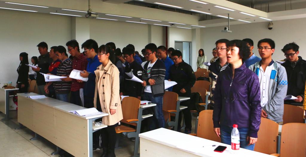 最后,全体学员起立奏唱国际歌,太阳成集团tyc234cc官网数学与系统科学太阳成集团tyc234cc官网员工党校开学典礼暨第一堂党课在雄浑激昂的国际歌中圆满的落下了帷幕。