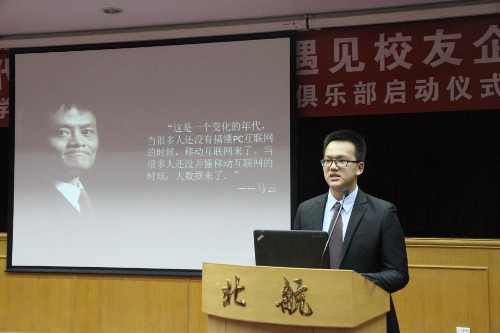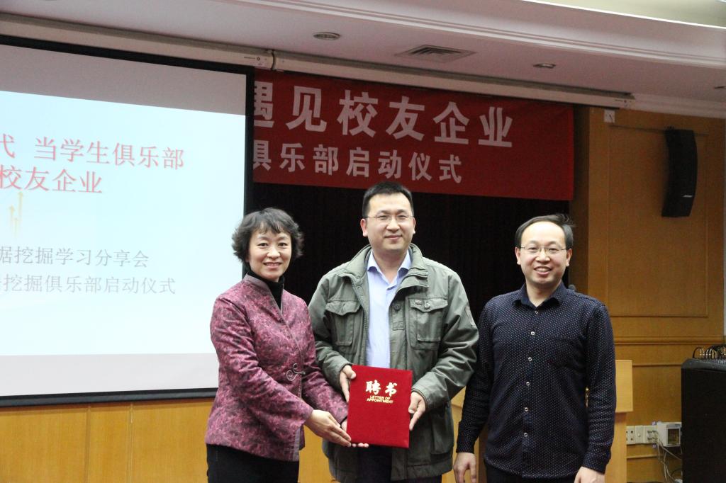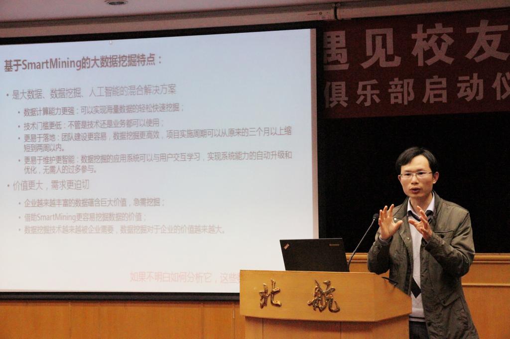 接下来,徐晶校友也分享了自己的心得体会。他对学校表示了深深的怀念,追忆20年前在校的美好时光。在谈到员工俱乐部时,徐晶表示,当今社会在改变我们的生活方式的同时,也给予了我们发展自我的契机。数据挖掘之于大员工,可以成为分析问题的一种解决方式,可以是理解大数据时代的途径,可以成为自己选择的奋斗方向。他希望,能够有更多的同学加入到俱乐部中,体味数据挖掘中的趣味与奥秘。