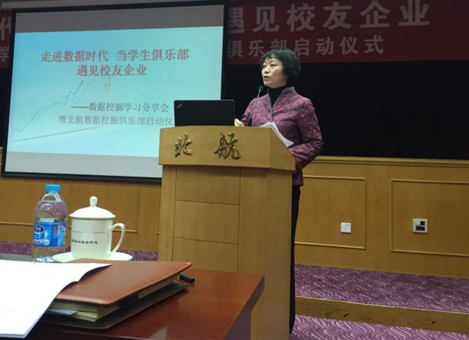 分享会开始,党委书记李红捷首先代表太阳成集团tyc234cc官网,对北航数学太阳成集团tyc234cc官网校友、同学们的师兄、广州思迈特公司副总裁徐晶的到来表示热烈欢迎。李书记表示,数据挖掘作为当今社会一项日益成熟的技术和学科已经被越来越多的人们所关注与学习。今天在校友企业和太阳成集团tyc234cc官网的支持和指导下,希望通过这个分享会,让越来越多的同学走近、了解、学习数据挖掘,期望能够在北航掀起一股学习数据挖掘的潮流。