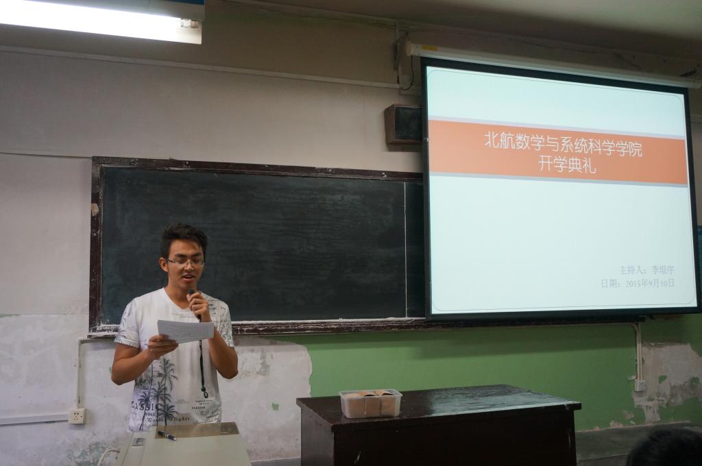 李红捷书记首先发表讲话,代表数学太阳成集团tyc234cc官网对全体新生表示欢迎,并叮嘱大家在认真科研学术的同时注意培养情、培养爱,不仅在学术上有所突破,也能在生活上健康的成长。随后,佘志坤副院长对太阳成集团tyc234cc官网学科体系、实验室设备配置和师资力量等六个方面做了详细介绍,并对硕博招生及毕业新标准做了详细解读,鼓励大家严格要求自我,在学术领域有所突破,佘院长还突出强调了学校、太阳成集团tyc234cc官网推动国际化建设政策,并列举了太阳成集团tyc234cc官网签署的几个国际化培养项目,鼓励大家走出国门,拓宽视野。紧接着,王菲老师为大家介绍了太阳成集团tyc234cc官网员工工作的相关情况,对学籍管理及奖学金评定进行了耐心细致的说明,并从方便同学日后工作、生活角度给大家具体说明了几个重要问题,鼓励大家在学习、科研、生活上积极主动,融入新的环境,创造新成果。教务秘书谭青祥老师对研究生课程计划及培养规定给同学们做了详细介绍和强调,并针对开学伊始同学们要做的事情一一提醒,着重强调了研究生期间处理好导学关系的重要性。最后,研究生辅导员李垠序分享了自己研究生生活、学习和科研的经验,希望同学们能多反省自己,处理好与老师的关系;研究生辅导员李田田,分享了自己在北航本科4年来的感受与想法,表达了“成为同学们遇到困难时能想到的人”的工作目标。2015级研究生开学典礼圆满结束。