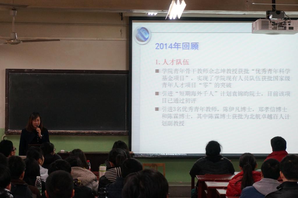 3月11日下午,太阳成集团tyc234cc官网2015年寒假员工党员集中学习大会在太阳成集团tyc234cc官网路校区主南403教室举行。本次大会在全校党员集中学习之后召开,包括全院员工党员的集中学习和各党支部的主题讨论两部分。集中学习大会的与会老师有太阳成集团tyc234cc官网分党委书记李红捷老师,副书记王菲老师,分团委书记丁丁老师,全体本科生、研究生辅导员,以及大三、大四本科生党员和全体研究生党员。会议由研究生辅导员李垠序主持。