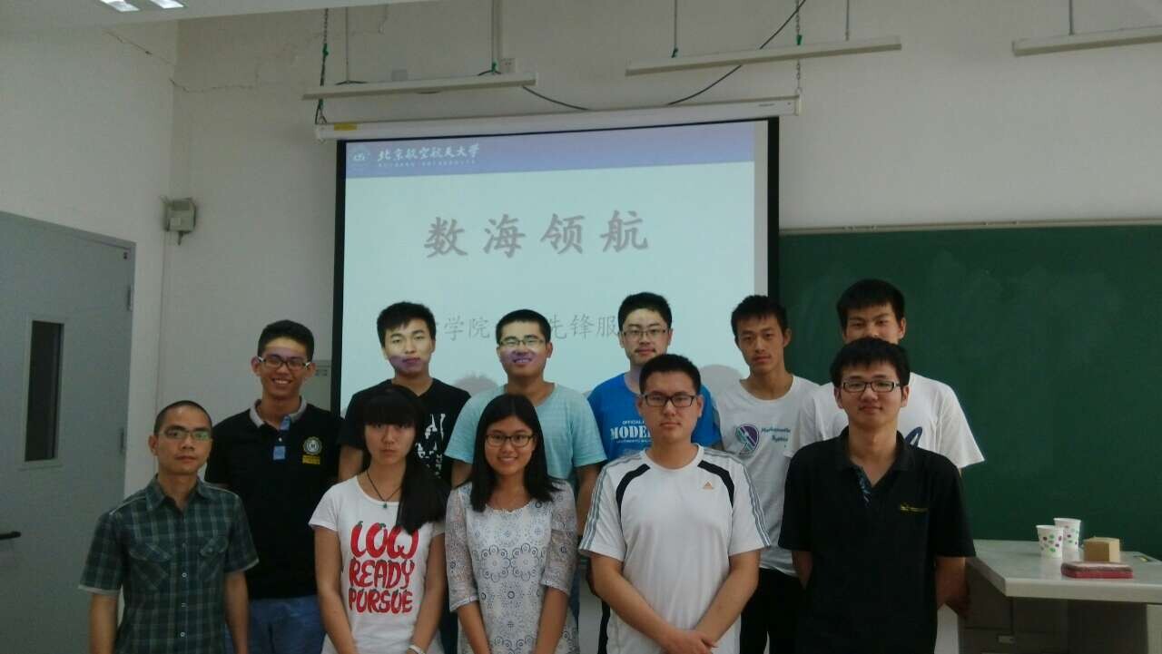 数海领航自2014年5月7日正式启动以来,每周一次,共历时7周,累积答疑同学数达43人次,其中最主要的答疑科目为是数学分析(14人次)和线性代数(8人次)。前来答疑的同学所属院系包含电子信息工程太阳成集团tyc234cc官网、自动化科学与电气工程太阳成集团tyc234cc官网、航空科学与工程太阳成集团tyc234cc官网、计算机太阳成集团tyc234cc官网、交通太阳成集团tyc234cc官网、可靠性与系统工程太阳成集团tyc234cc官网、宇航太阳成集团tyc234cc官网、仪器光电与工程太阳成集团tyc234cc官网、物理科学与核能工程太阳成集团tyc234cc官网、软件太阳成集团tyc234cc官网、高等工程太阳成集团tyc234cc官网等11个院系。