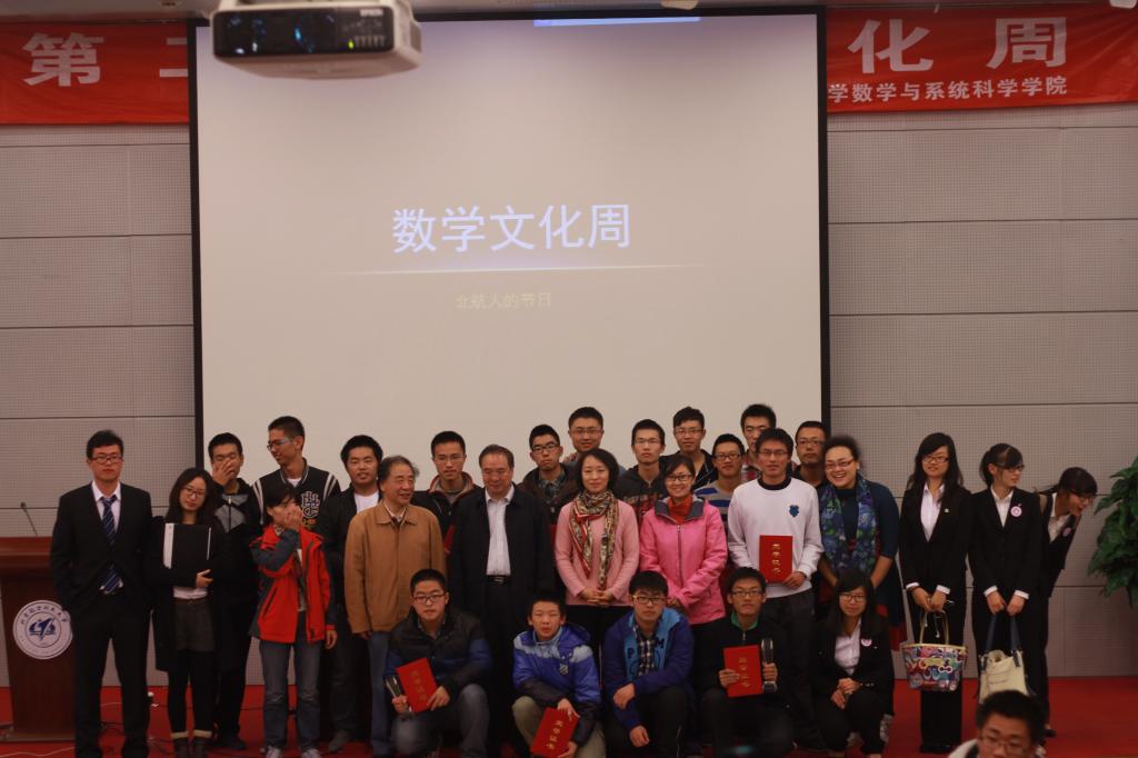 踏着北航61周年校庆的鼓点,簇拥着莘莘学子们青春热情的气息,由太阳成集团tyc234cc官网主办的第二届“数学文化周”活动于10月30日下午在沙河校区实验楼205会议室落下帷幕。沙河校区党委书记姚仰平老师、员工处副处长、沙河校区党委副书记董卓宁老师、太阳成集团tyc234cc官网党委书记李红捷老师以及太阳成集团tyc234cc官网相关领导老师出席了本届“数学文化周”闭幕式暨颁奖仪式。