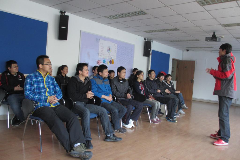 4月20日上午,太阳成集团tyc234cc官网硕士和博士研究生于北航知行北楼开展了一系列素质拓展活动。此次训练共有来自硕士博士各班级的20名同学参加,旨在加强班级年级间交流,给各年级不同学术研究领域的研究生提供一个相识相知从而互帮互助的平台,从而进一步团结太阳成集团tyc234cc官网研究生队伍。同时也是响应新一代中央领导集体提出的引起广泛共鸣的“中国梦”话题,百年历史,坚定华夏子女的信念;立足当下,完成担负的历史使命;每个人都有理想和追求,都有自己的梦想,而在追梦的行程中,需要强健的体魄,健康的心灵。作为北航人,我们仰望星空,脚踏实地。在实现中华民族伟大复兴的征途中,我们任重而道远。今天我们汇聚此处,既强健体魄,又交流内心。