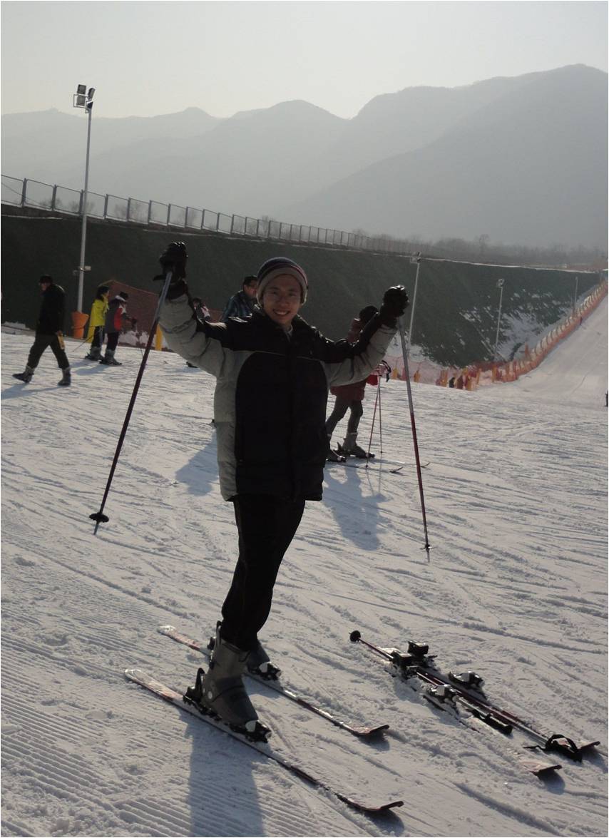 1月4日一大早,来自两个班的近30名同学一起搭乘地铁、公交及雪场班车,来到了位于海淀区温泉镇的金辉滑雪场。冬日的金辉滑雪场银装素裹。寒冷的天气挡不住同学们的热情,大家整齐有序的入场,快速的装备雪具,不到三十分钟就全副武装地出现在雪地中。虽然大部分都是初学者,怀着忐忑的心情走上雪场,在学习过程中难免摔倒,但在大家的互帮互助下,很快就掌握了滑雪技巧,平日里学习严肃认真的同学们嘻嘻哈哈欢笑不停。虽然一次次的摔倒,虽然一次次回到起点重新开始,但是每一个人都沉醉在滑雪带来的激情乐趣中。大家你追我赶,毫不服输,尽情享受着滑雪带来的刺激与惊喜。在这里大家体会到了滑雪所带来的无穷乐趣。当缷下雪板,脱下雪鞋时,不禁脱口而出,“脚踏实地的感觉真爽”!