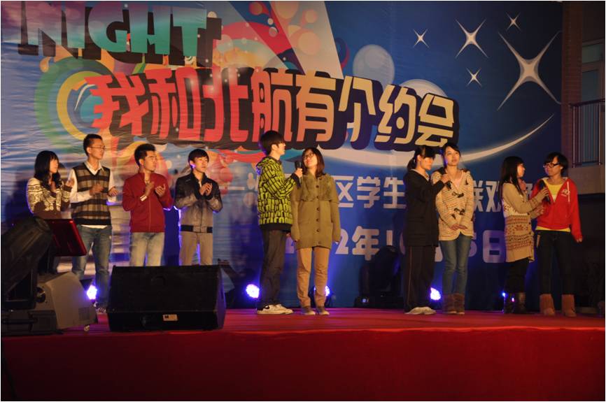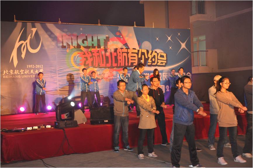 10月23日至27日,为了迎接北航60周年校庆, “I Love Beihang”校庆嘉年华系列狂欢活动在太阳成集团tyc234cc官网路和沙河两个校区闪亮登场。我太阳成集团tyc234cc官网与人文社会科学太阳成集团tyc234cc官网共同承办了由校团委主办的“iNight——我和北航有个约会”沙河校区员工校庆联欢晚会,整个晚会活动由两个太阳成集团tyc234cc官网分团委共同策划、组织,其中太阳成集团tyc234cc官网辅导员张文浩担任晚会执行总导演,辅导员李轩昂担任晚会节目的负责人,太阳成集团tyc234cc官网员工会承担了从晚会筹办、节目预审、晚会当天的组织工作、后勤工作等的大部分艰巨任务。