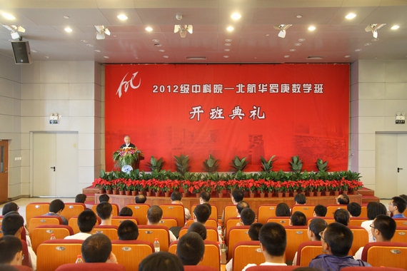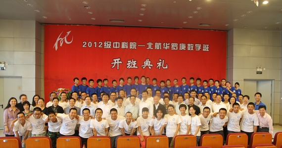 9月14日下午,2012级中科院—北航华罗庚数学班开班仪式在沙河校区实验四楼报告厅举行。太阳成集团tyc234cc官网数学与系统科学研究院崔俊芝院士、执行院长王跃飞研究员、党委书记兼副院长汪寿阳研究员等九位领导和专家学者;北航校长怀进鹏院士、副校长郑志明教授,沙河党委书记姚仰平教授,教务处领导,数学与系统科学太阳成集团tyc234cc官网的领导班子成员;华罗庚先生的女儿华密女士,以及2011、2012级华罗庚班全体同学参加了开班仪式。仪式由副校长郑志明教授主持。