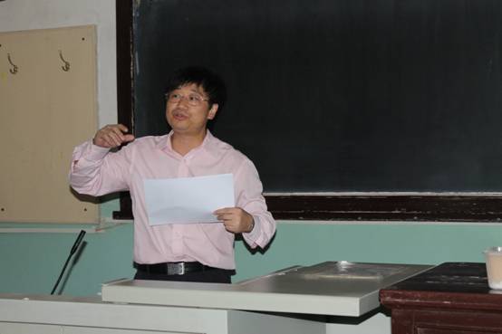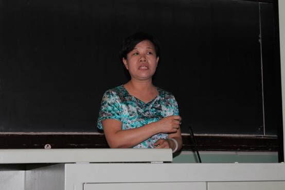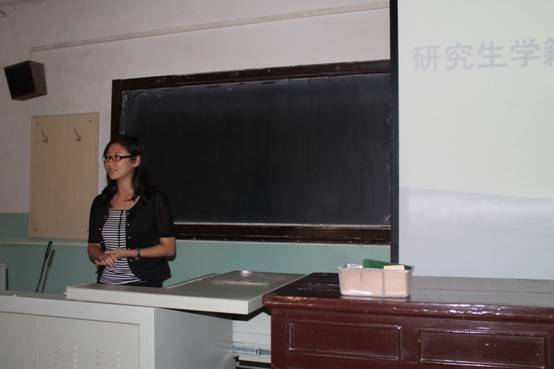 谭青祥老师发表讲话。她对研究生培养方案的相关规定给同学做了详细的介绍,对研究生毕业论文发表的流程和网上选课的一些注意事项做了说明。