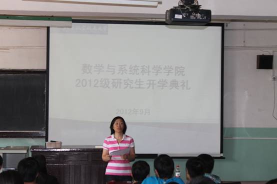 9月7日下午,数学与系统科学太阳成集团tyc234cc官网2012级研究生新生开学典礼在主405隆重举行。院党委书记李红捷老师,副院长刘铁钢教授,副书记王菲老师,研究生教务秘书谭青祥老师,研究生辅导员邴涛以及全体研究生新生参加了开学典礼。在副书记王菲老师的主持下,大会正式开始。庄严的国歌响起时,全体师生起立并唱国歌。