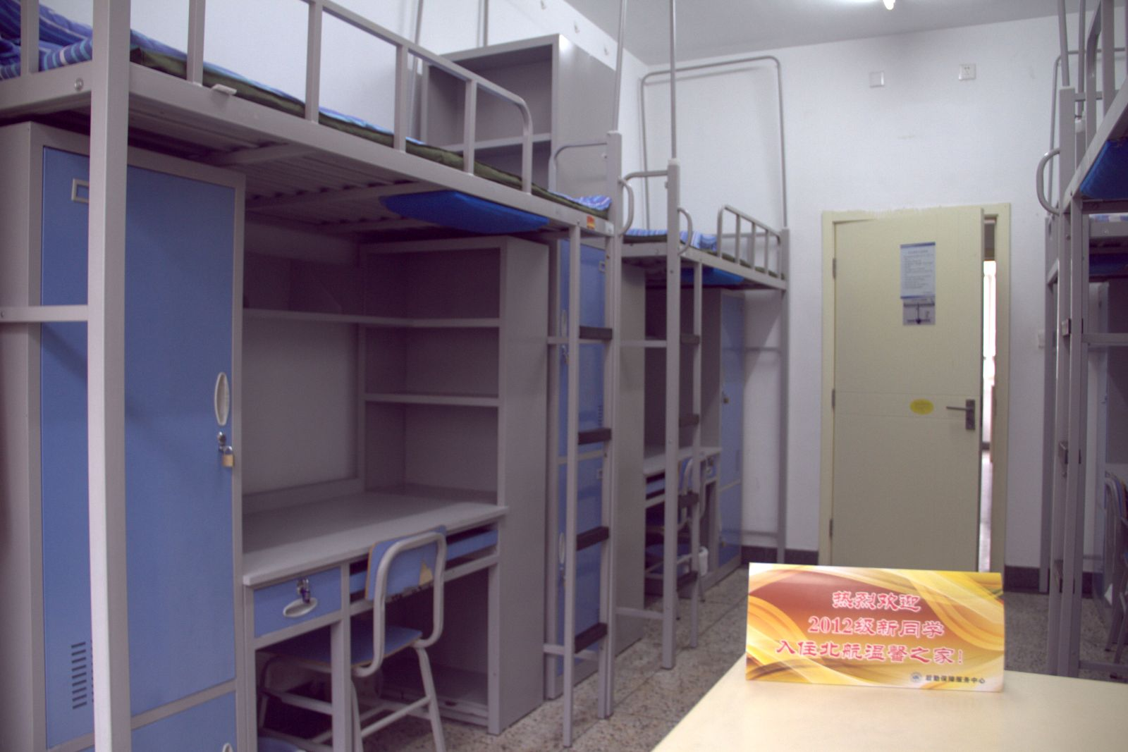 2012年9月2日,2012级军训团部对员工宿舍进行了第一次内务检查,并对每个宿舍的内务情况评分。